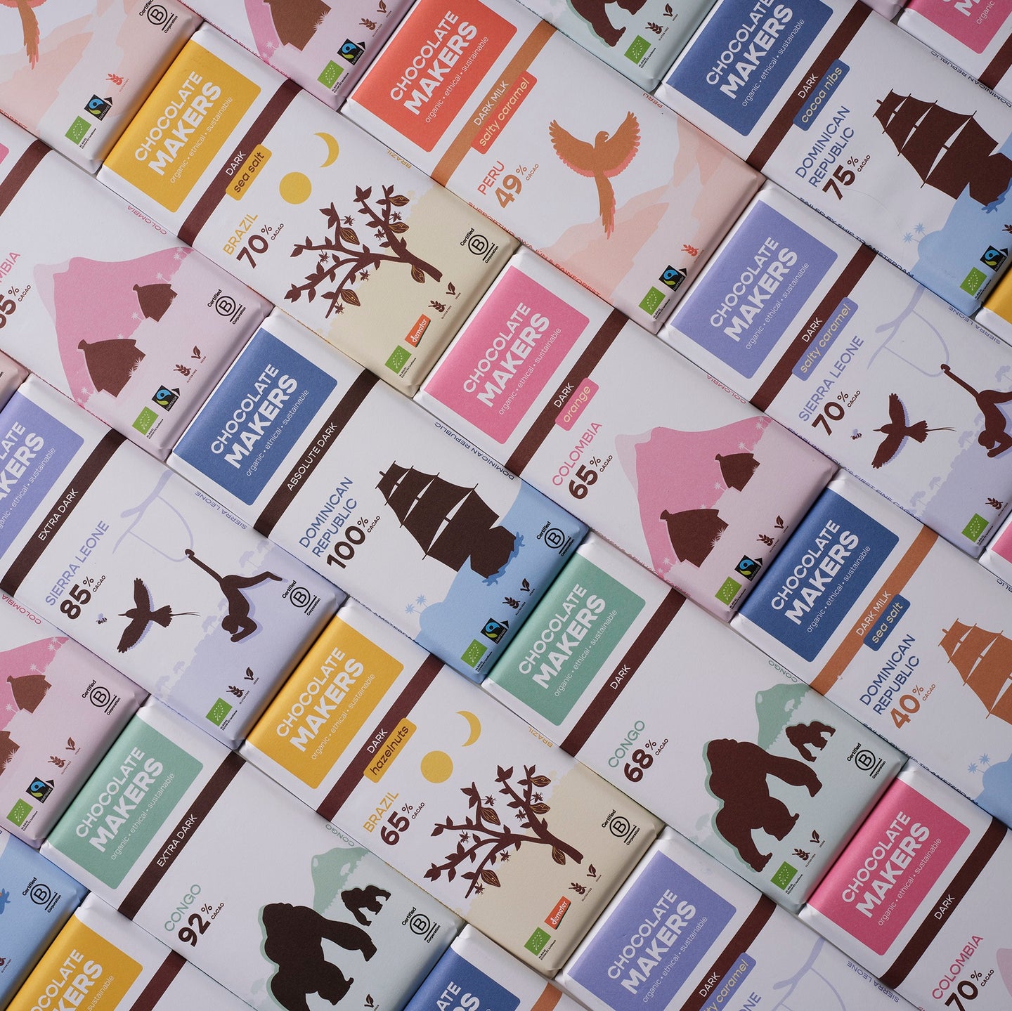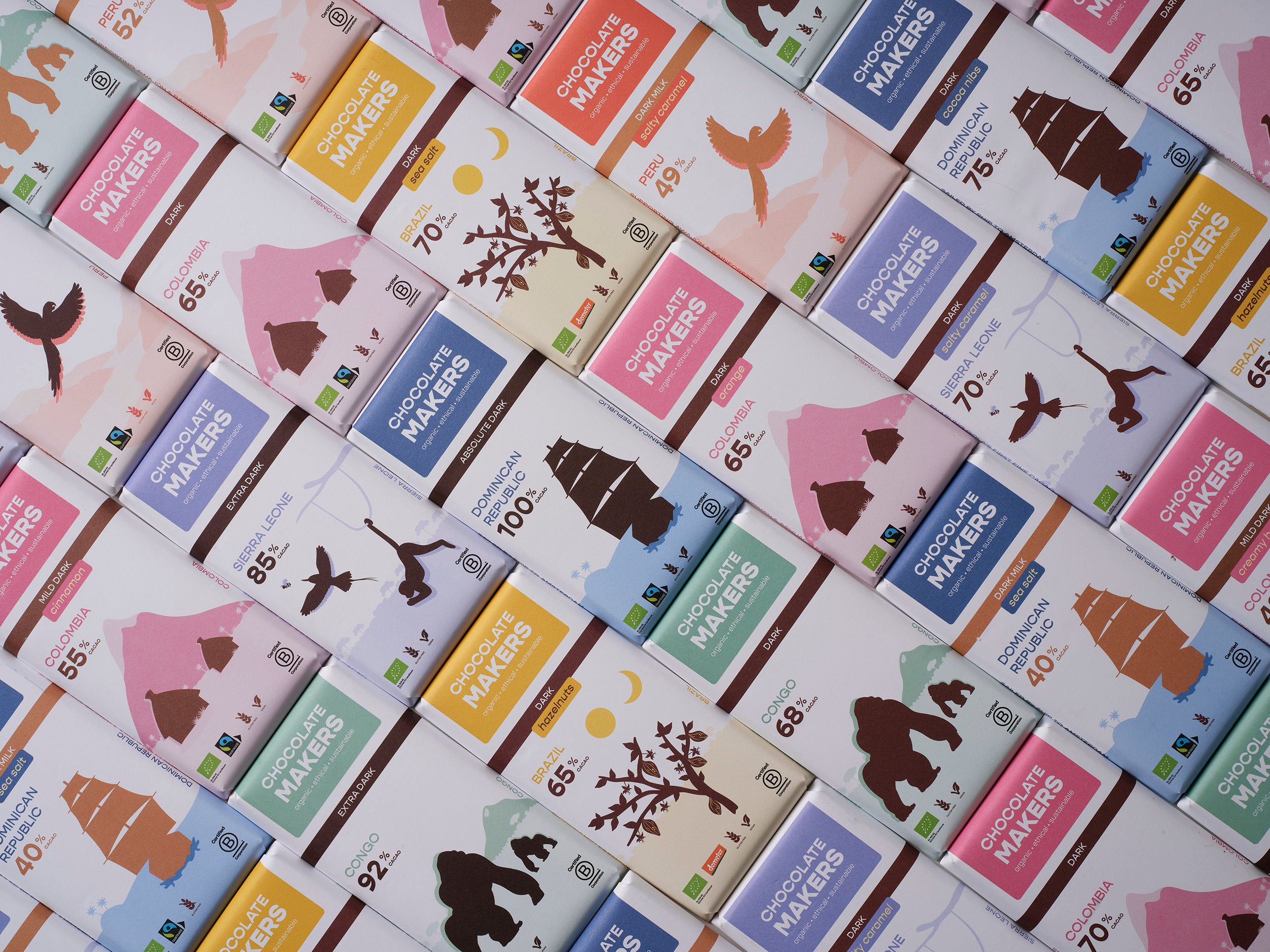 We use only organic, single-origin chocolate, combined with carefully selected organic ingredients.