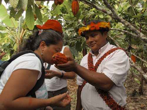 This organic and Fairtrade cocoa is grown by the Awajún along the banks of the Cenepa and Rio Santiago rivers in the Amazon rainforest. They are members of the NorAndino cooperative, an organisation with approximately 5000 members, including 1800 cocoa farmers, spread across northern Peru, both on the coastal side and the Amazon side. We are also assisting NorAndino with a special project.